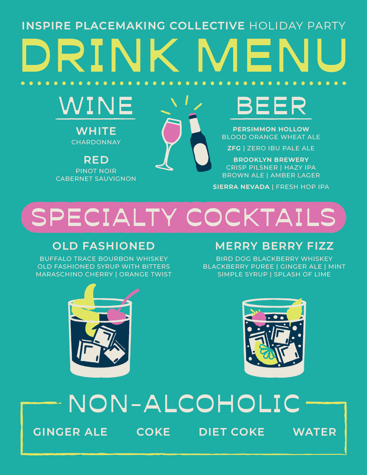 I designed a cohesive holiday campaign inspired by postage stamps and various holiday scenes for Inspire Placemaking Collective. The campaign included a print holiday card, an animated email card, and event materials for the annual holiday party. Each design featured charming illustrations framed in postage stamps, inspired by the diverse places and communities that the firm works with. Along with the cards, I created a custom event menu and other branded materials, ensuring a seamless and engaging visual experience for clients and employees alike.